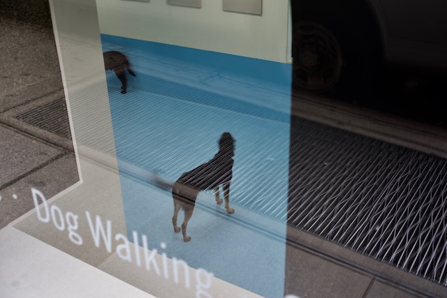 Els gossets passejant és una de les que m’agraden més de tota la sèrie que hem penjat. La imatge partida, el gos partit i el concepte de la fotografia amb les lletres del vidre fan la foto d’allò més atractiu..
