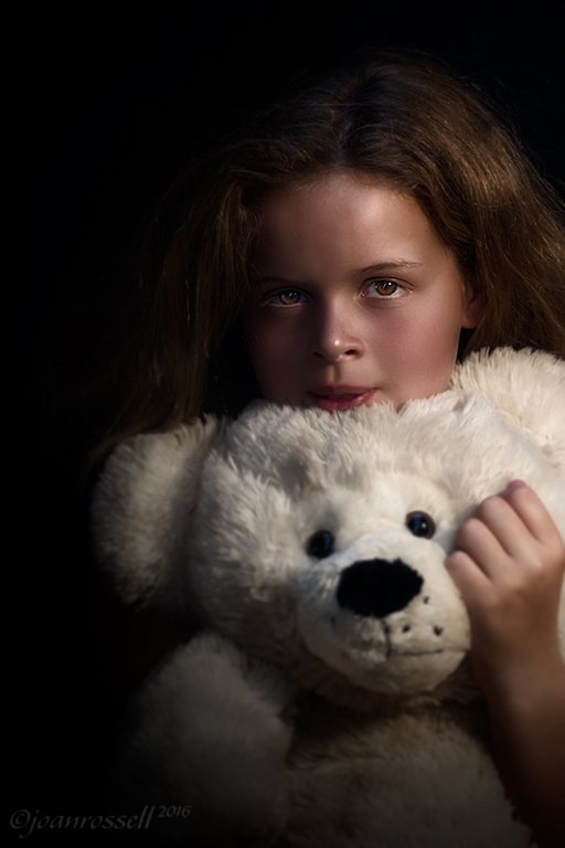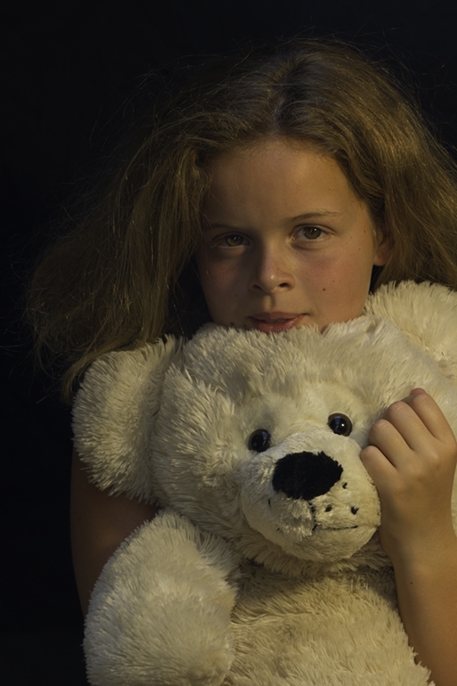 La que us ensenyo és la que em va agradar més. És una foto amb un posat amargant, entre la foto dolça de la nena i el seu peluix i el posat d’una fotografia de por, només cal un ganivet i una taca de sang perquè canviï radicalment la tessitura de la fotografia.